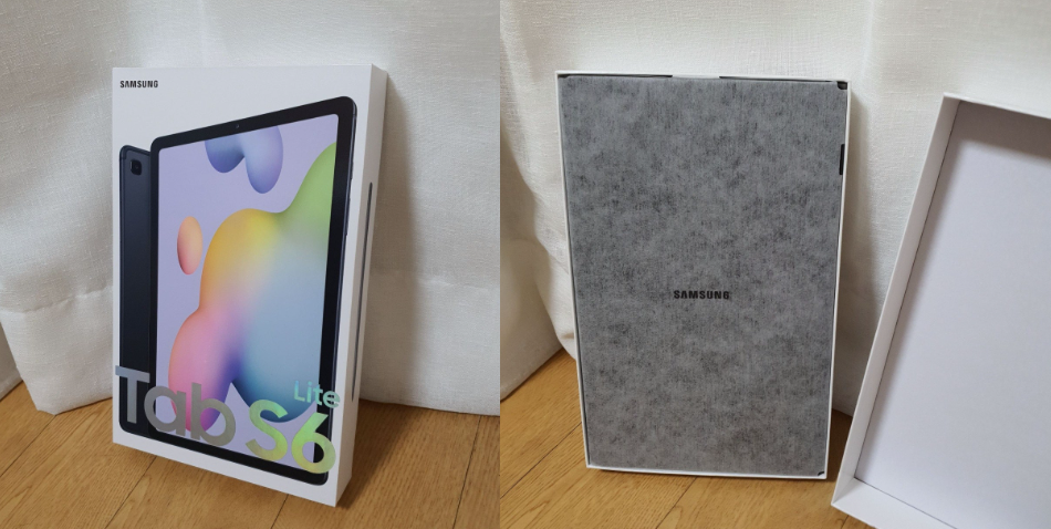 타란 ~ 반짝 직관적인 탭상자 SAMSUNG TAB S6 LITE 오픈하면 얇은 부직포가 덧씌워져 있어요.