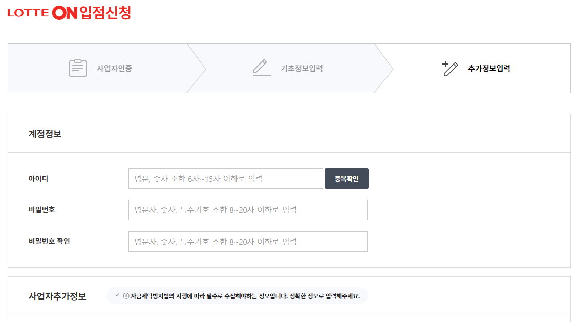 롯데온은 서류제출 과정 이전에 다른 플랫폼보다는 비교적 간단하게 가입이 가능했습니다. 다만 서류제출해야하는게 대표자 서류가 추가되어 많네요.