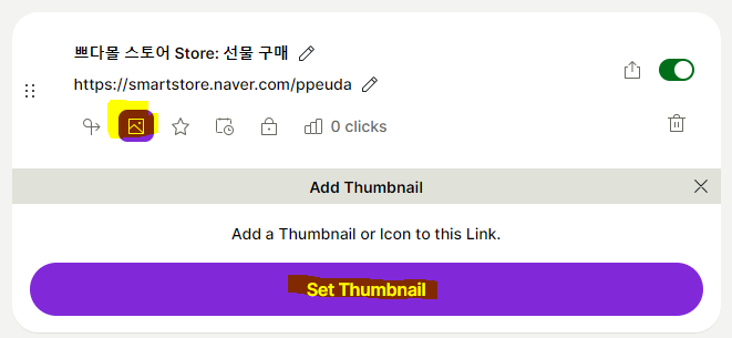 14. 항목별 아이콘을 추가할수도 있는데요. 사진모양 아이콘을 클릭하고 Set Thumbnail을 클릭합니다.