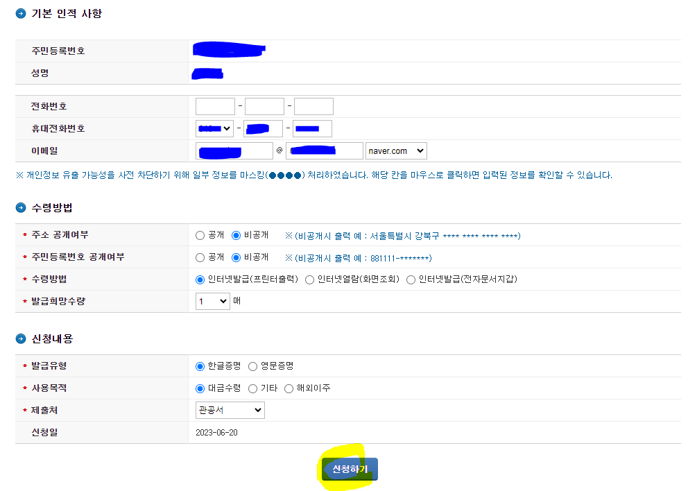 그럼 차례대로 발급해보아요.