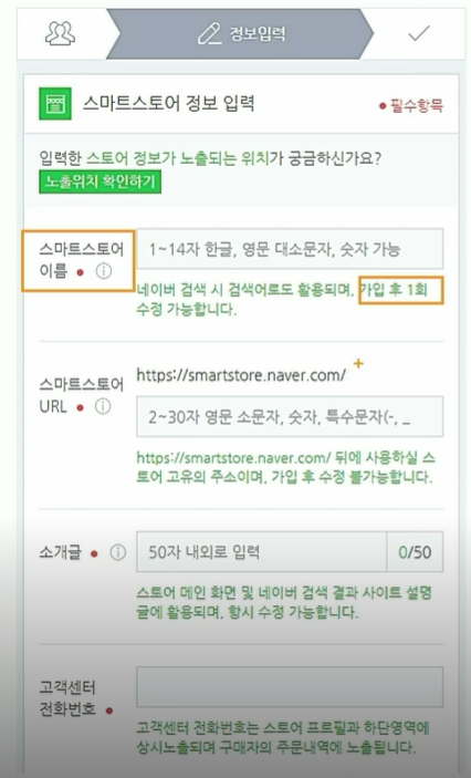 판매자가 스마트스토어센터에서 직접 변경 불가