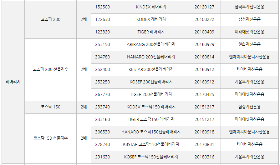 그럼 한국과 미국의 레버리지, 인버스 추종 ETF들을 알아볼게요.