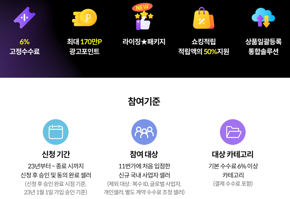 3. 현재 아래와 같은 신규 입점 혜택을 제공하고 있으니 참조해주세요.