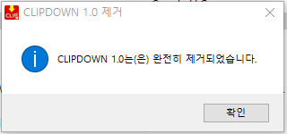 5. 나를 귀찮게 하고 괴롭히던 CLIPDOWN이 제거되었다는 팝업이 뜨네요.